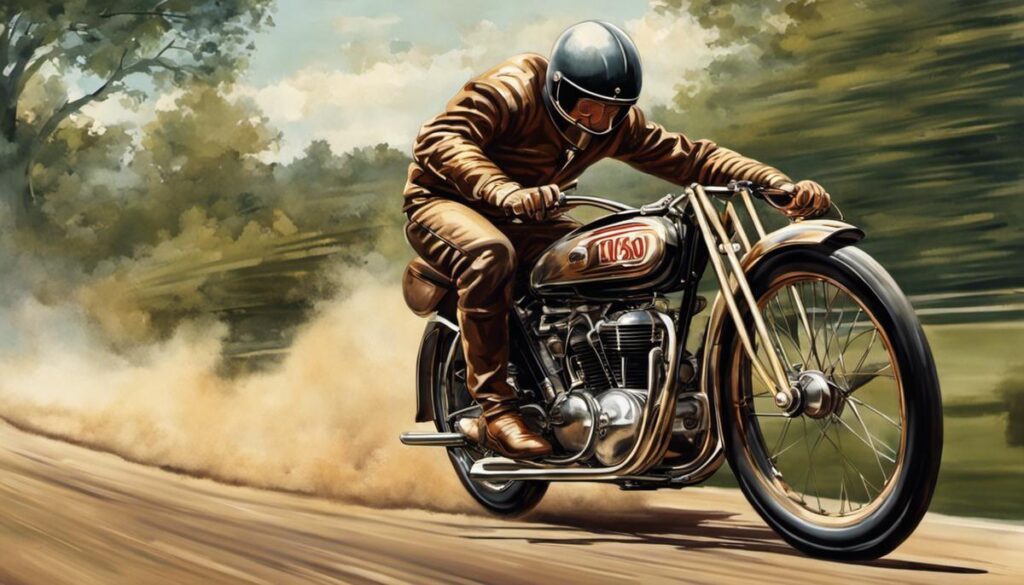 One of the early speed records set during this era was by Glenn Curtiss in 1907. Riding a V8 motorcycle, he reached a blistering speed of 136.36 mph. Although the Federation Internationale de Motocyclisme didn’t certify it, this record stood for over 20 years.